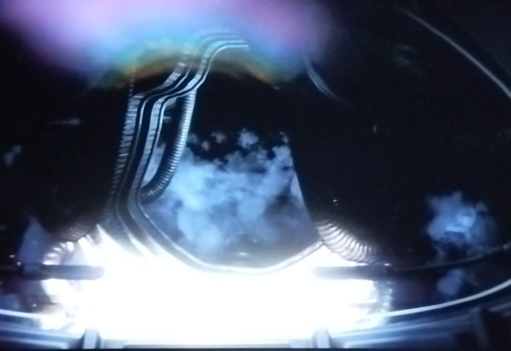 Auf der Treppe zur Kommunikationszentrale liegen Leichen. Bei einem Opfer ist das Gesicht schrecklich entstellt. Welcher Mensch macht sowas? Oder waren es doch die Androiden, die alle durchdrehen? Vor der Zentrale ist ein Lüftungsschacht. Ich höre es klappern. Ein Wummern und Dröhnen ist zu hören. Das Geräusch kommt schnell näher. Mein Motion Tracker blinkt wie verrückt. Was zur Hölle ist das? Was auch immer es ist, ich verstecke mich unter dem Tisch. Dann wird es leise. Von oben tropft aus dem Lüftungsschacht Schleim. Langsam kommt ein langer, schwarzer Schwanz mit skorpionähnlichen Widerhaken zum Vorschein, gefolgt von einem Wesen wie ich es noch nie zuvor gesehen habe. Ein längliches Exoskelett mit einem glatten, länglichen Schädel. Könnte dieses Monster für das Chaos verantwortlich sein? Ich mag es mir gar nicht ausmalen.